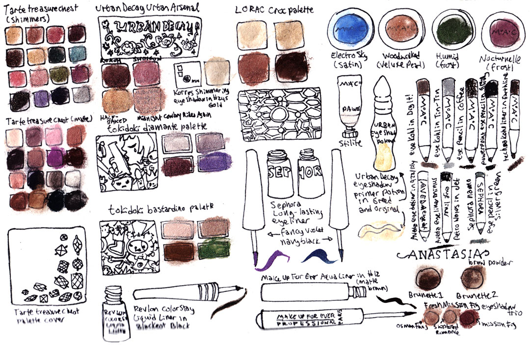 Julia Minamata, aki olyan kiadványokba készített illusztrációkat, mint a The New Yorker vagy a Business Week, úgy döntött, hogy a teljes sminkkollekcióját megörökíti az utókor számára, kiegészítve olyan termékekkel is, amikre vágyik. A képek egy részére ténylegesen fel is vitte a sminkeket némi ragasztóra. Klassz kollekció, nem igaz?